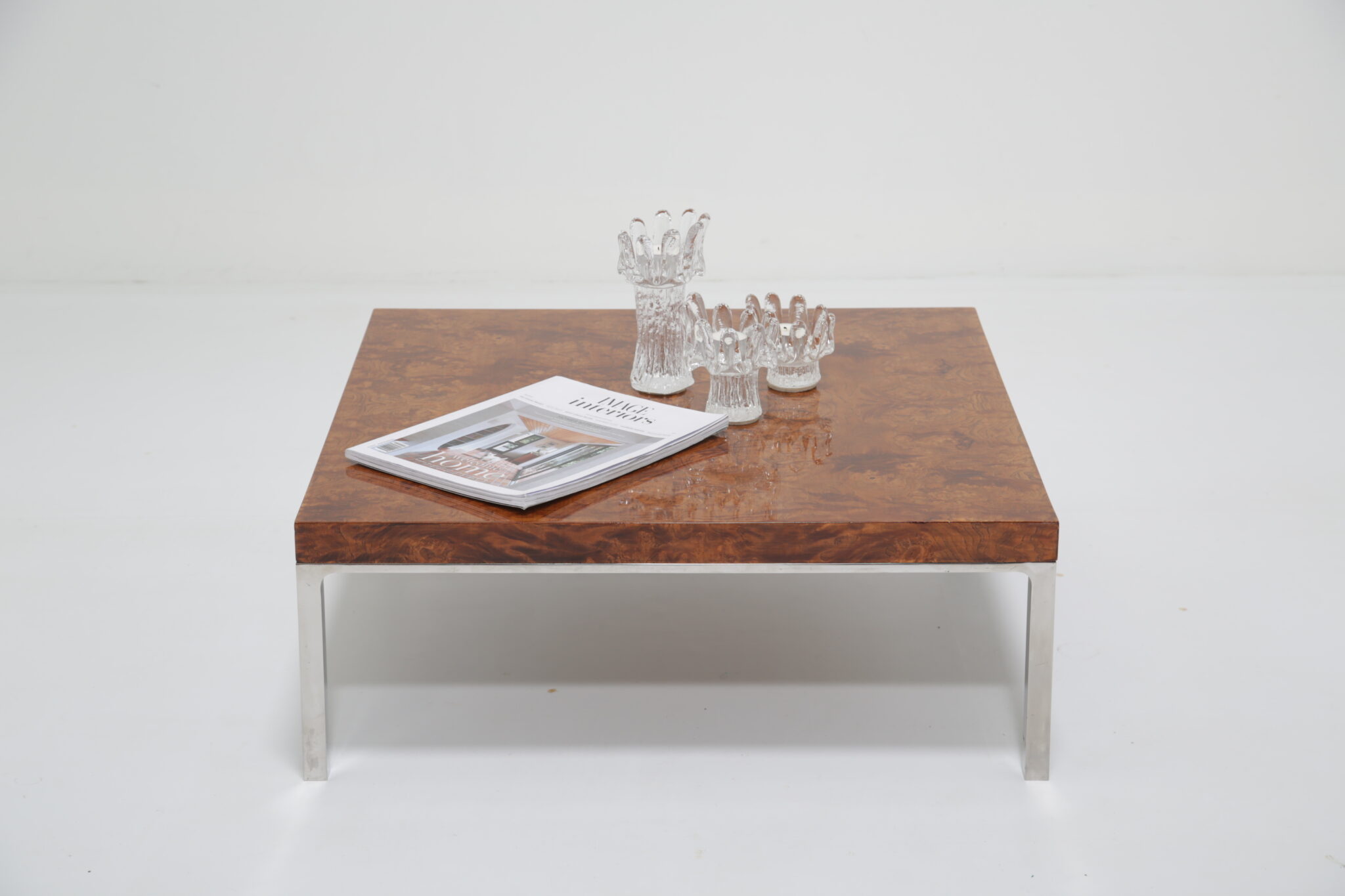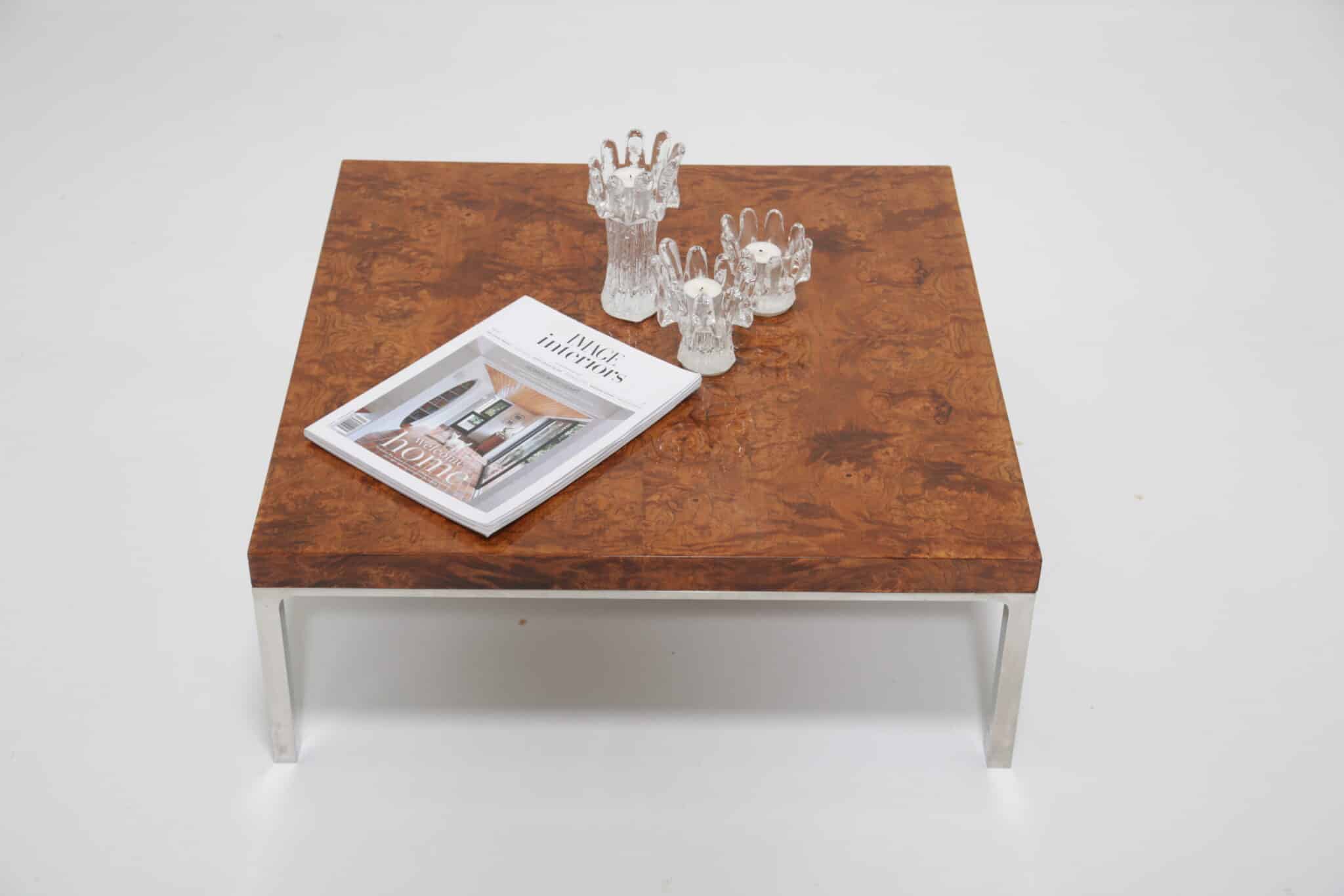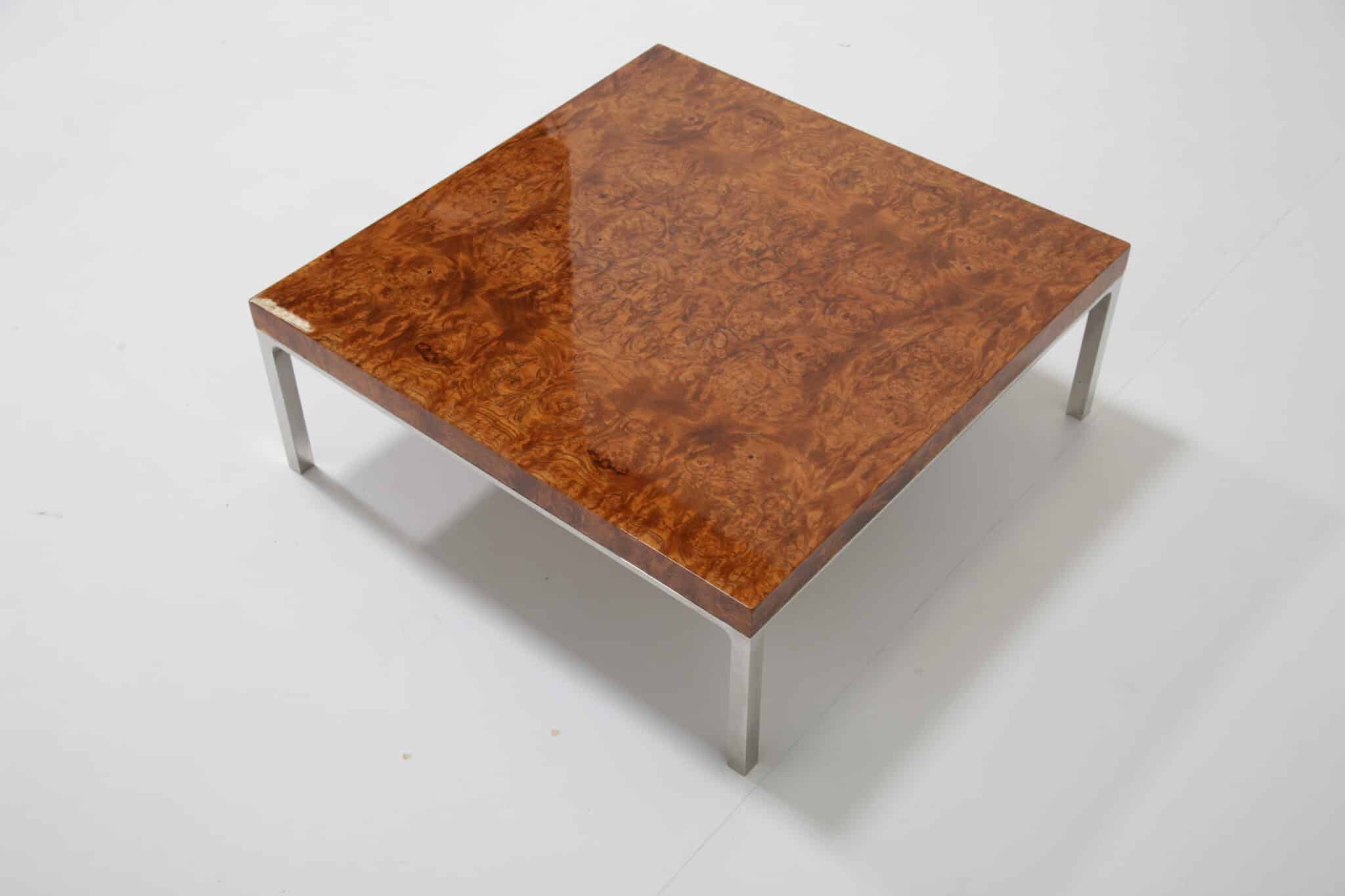 I am a sucker for what I (and most American dealers) call burlwood and chrome. What better than to get a hold of a wonderful burl veneer and encase it in a high gloss clearcoat lacquer and then stick chrome legs on it. The mirror-like surface accentuates the wood’s mesmerizing patterns, creating a perfect blend of natures design and man made materials.