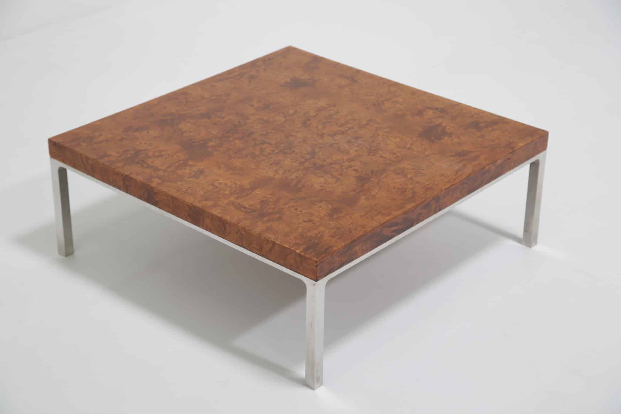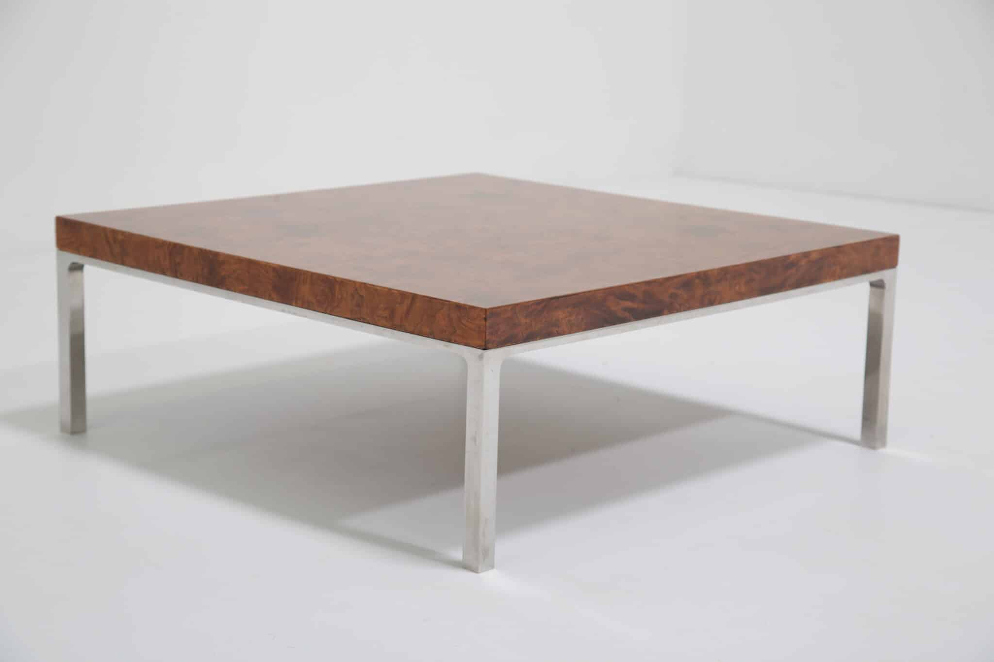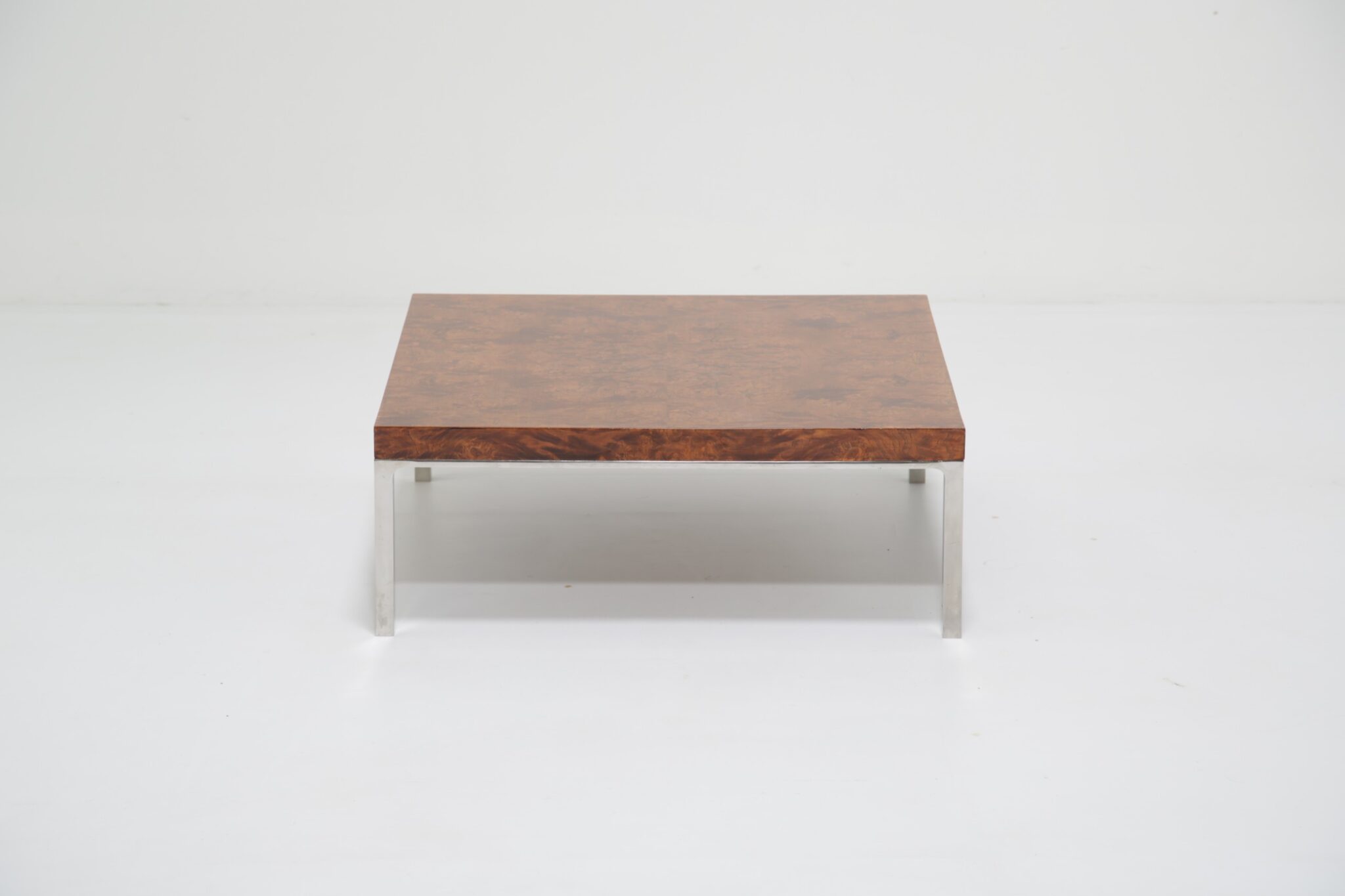I am a sucker for what I (and most American dealers) call burlwood and chrome. What better than to get a hold of a wonderful burl veneer and encase it in a high gloss clearcoat lacquer and then stick chrome legs on it. The mirror-like surface accentuates the wood’s mesmerizing patterns, creating a perfect blend of natures design and man made materials.