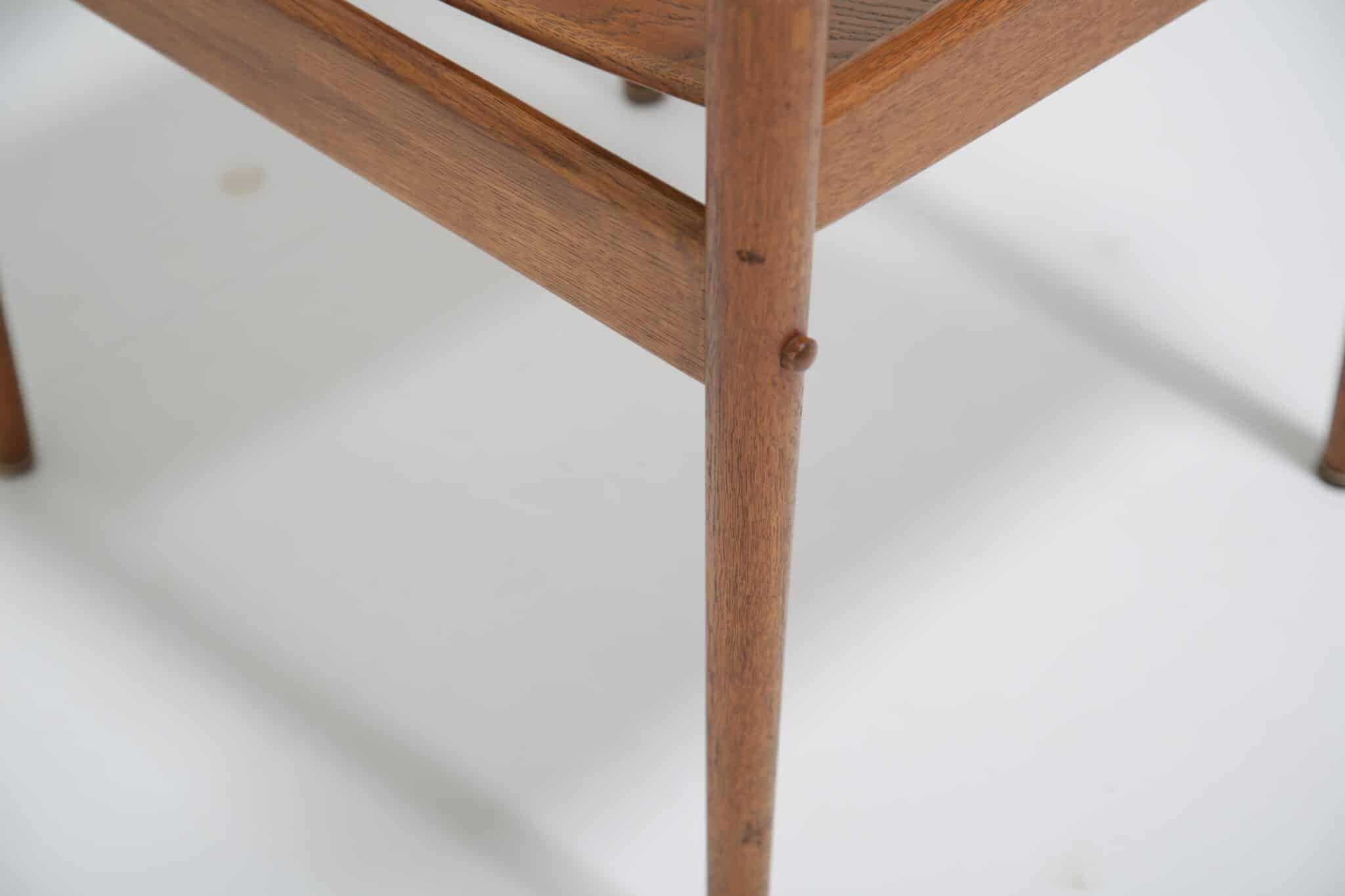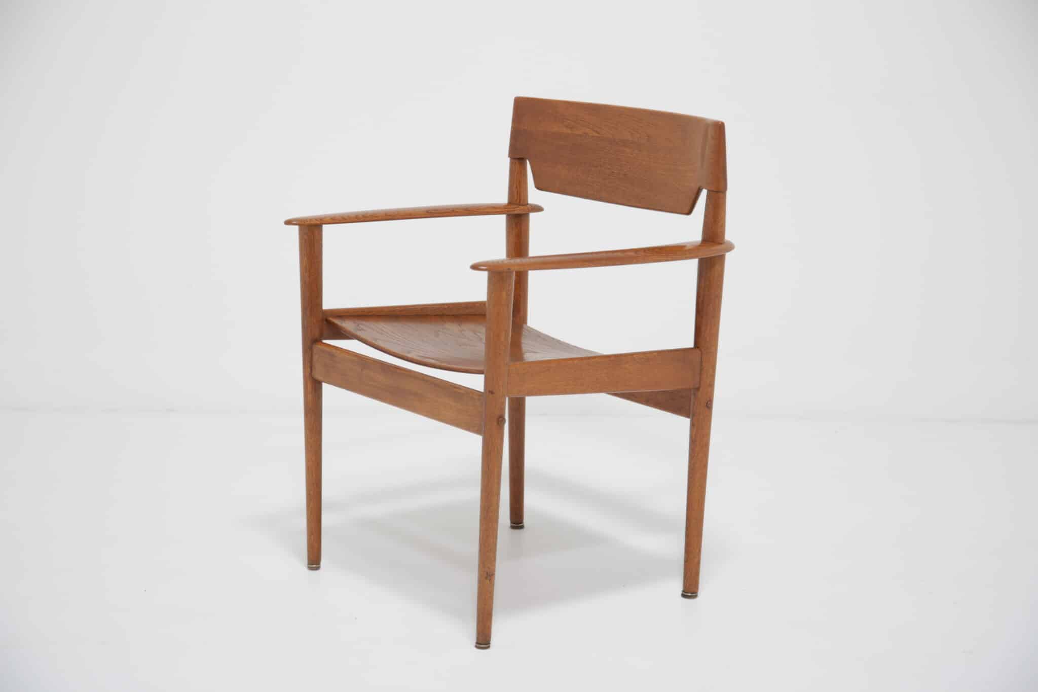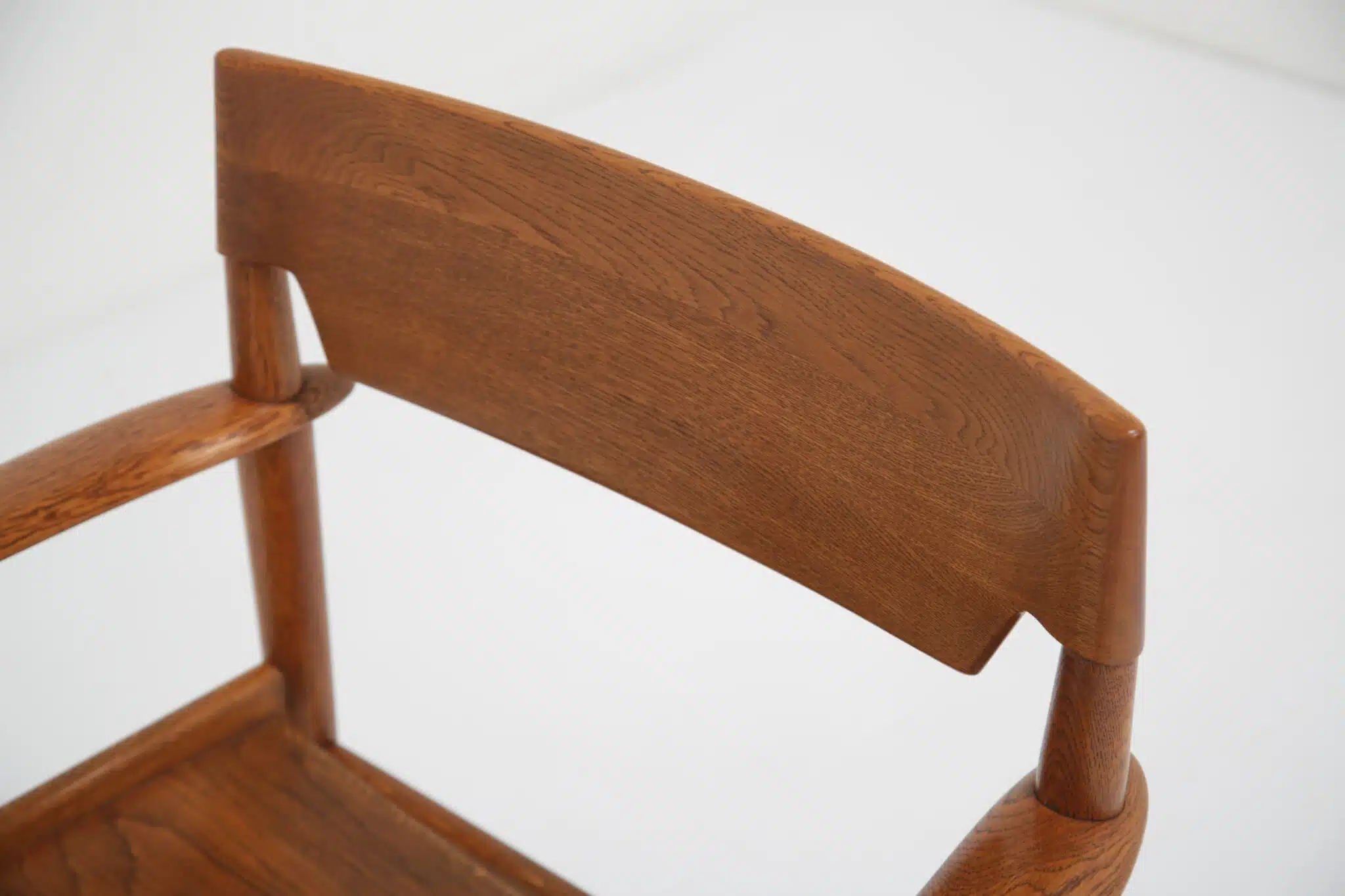Firstly, Grete Jalk was a pioneer in Danish design. Secondly, her PJ4-2 armchair blends beauty with functionality. Moreover, its sculpted form demonstrates masterful woodworking. Today,the Grete Jalk oak PJ4-2 Armchair remains highly sought-after by collectors.