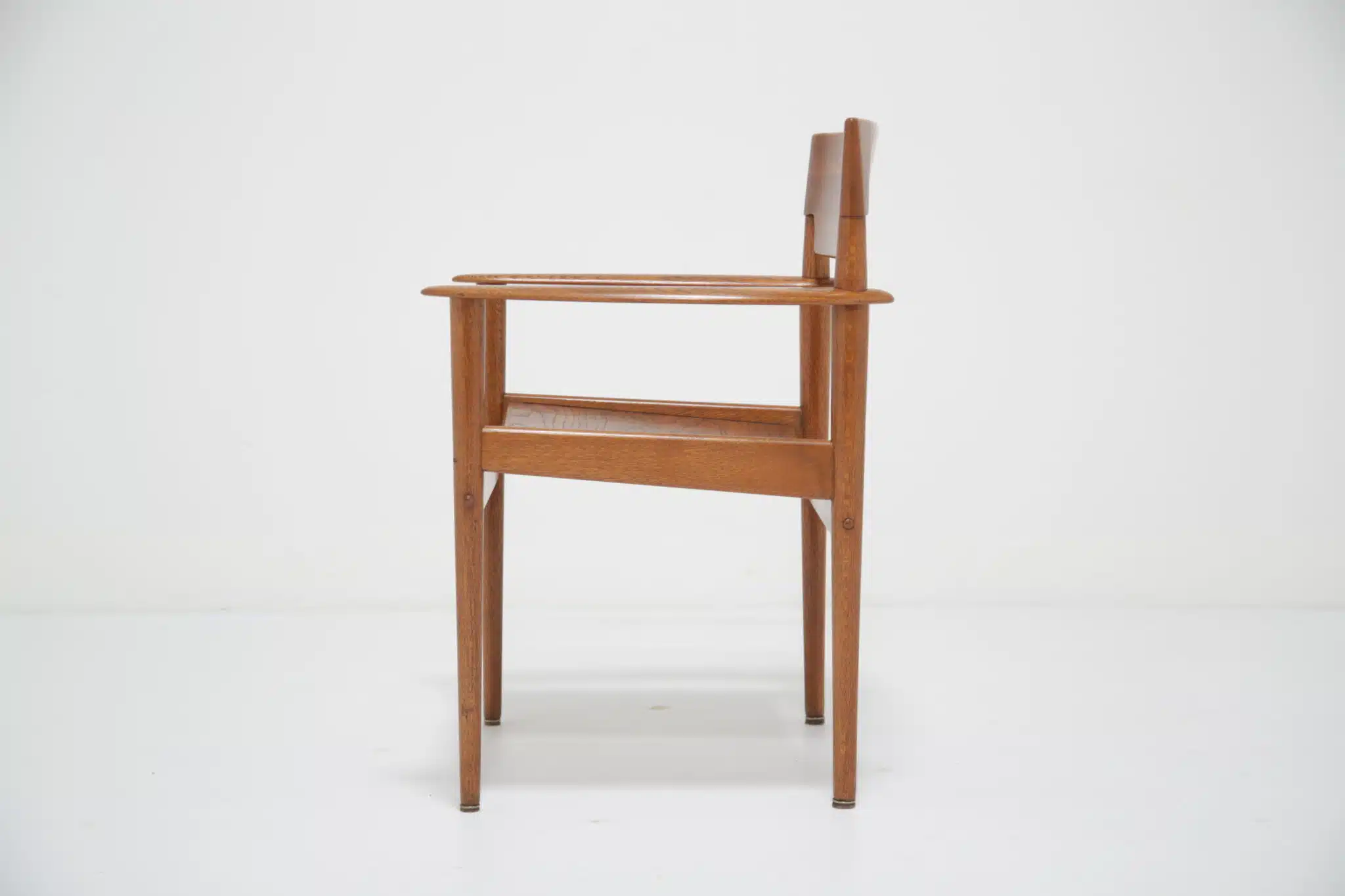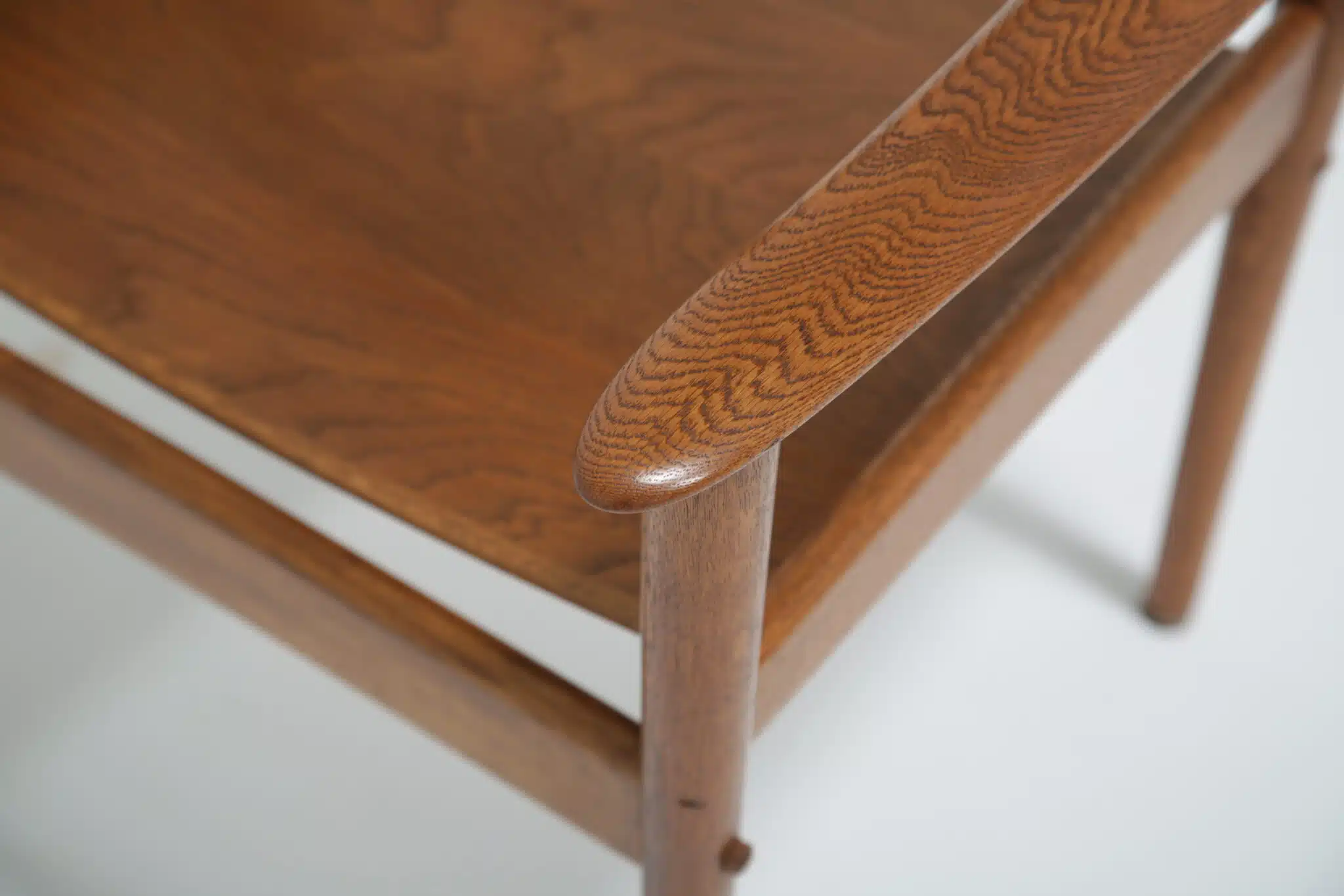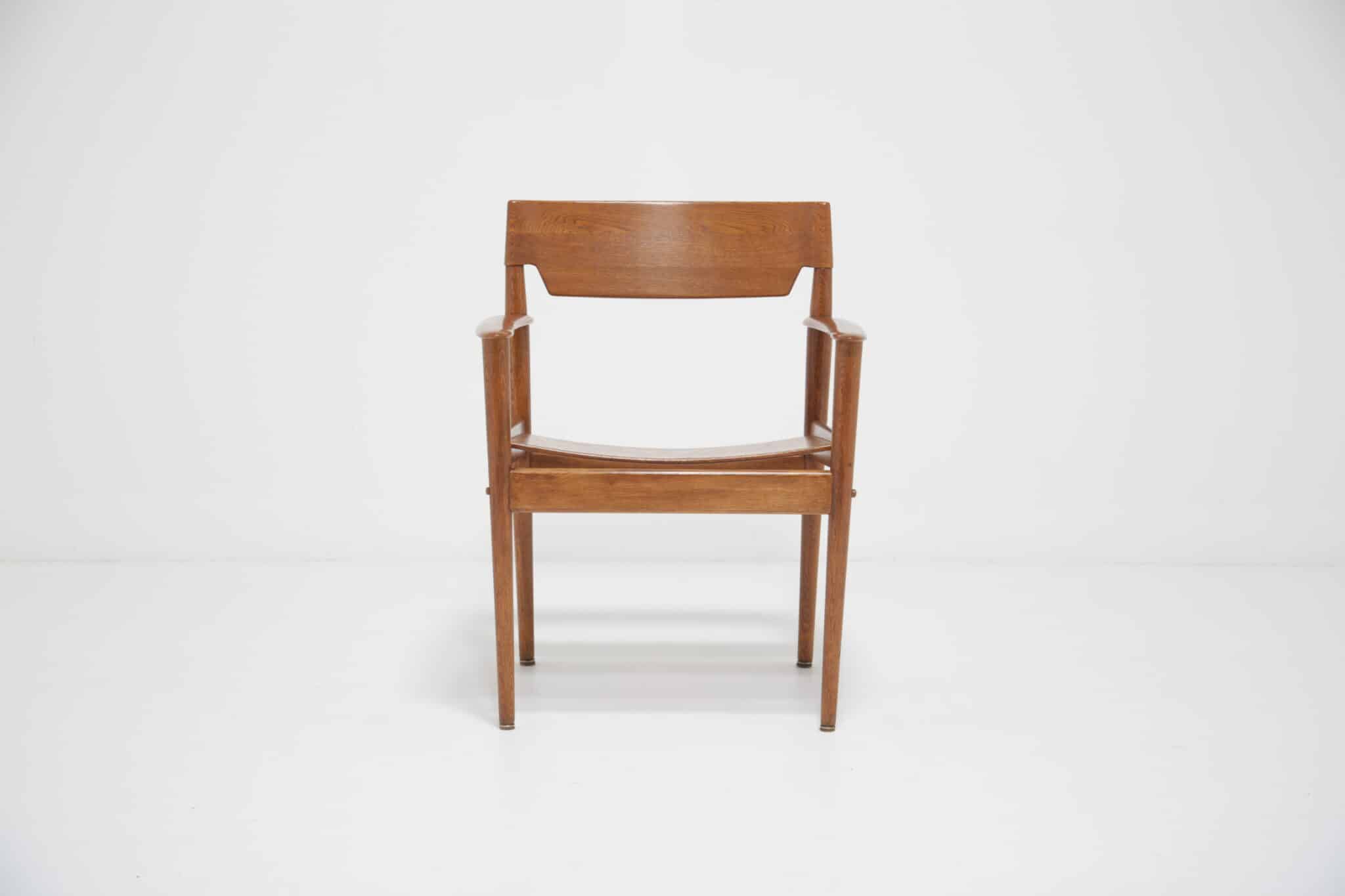 Firstly, Grete Jalk was a pioneer in Danish design. Secondly, her PJ4-2 armchair blends beauty with functionality. Moreover, its sculpted form demonstrates masterful woodworking. Today,the Grete Jalk oak PJ4-2 Armchair remains highly sought-after by collectors.