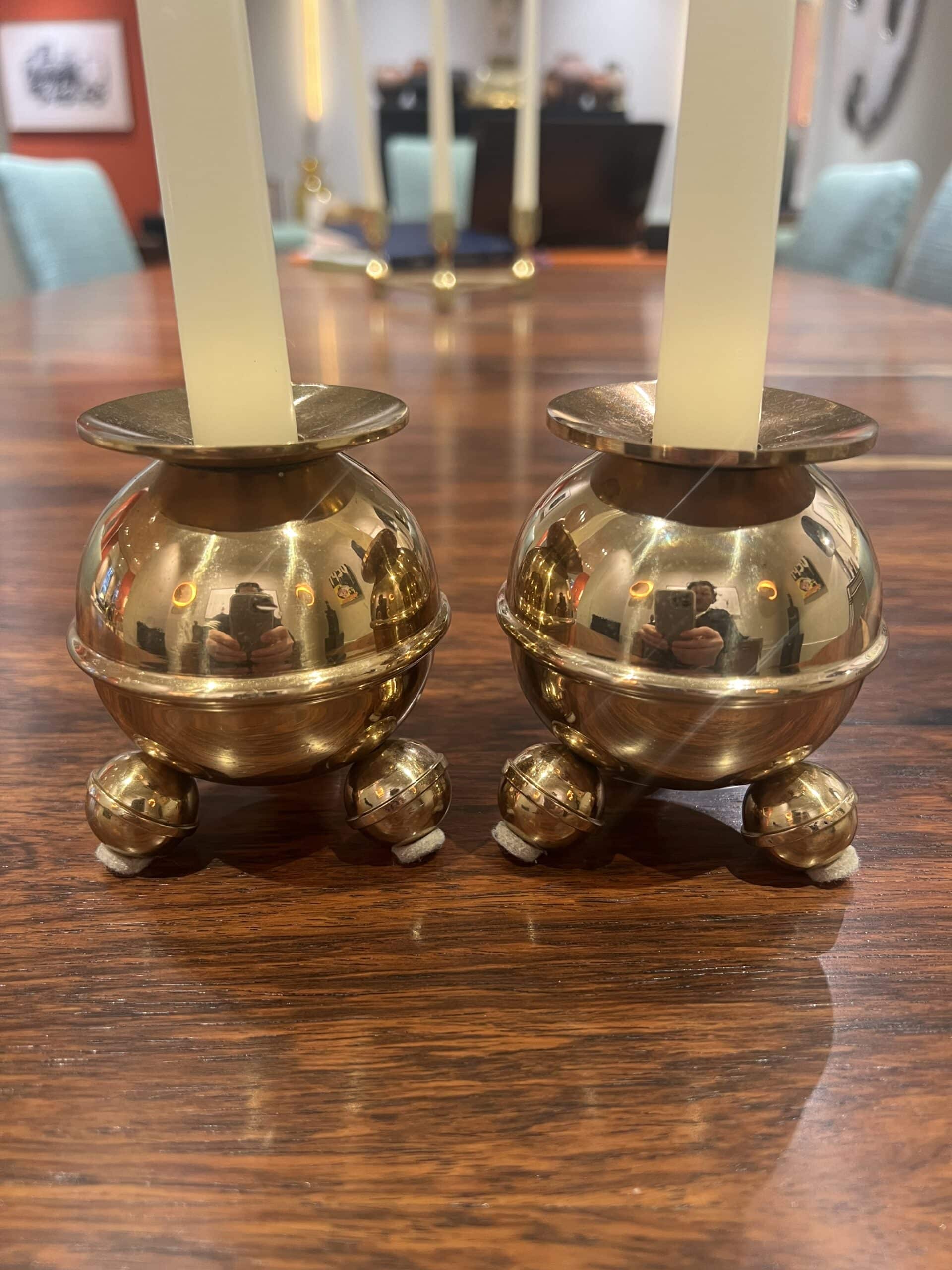 Professionally cleaned, these candlesticks gleam with a radiant brass finish and are in exceptional condition. Their heavy construction adds durability while ensuring they remain sturdy and practical for everyday use.